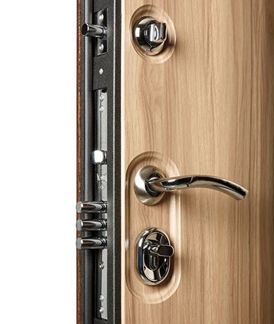 Установлены: цилиндровый замок "STADT", сувальдный замок "STADT", ночная задвижка, броненакладка, эксцентрик, ручки и глазок.