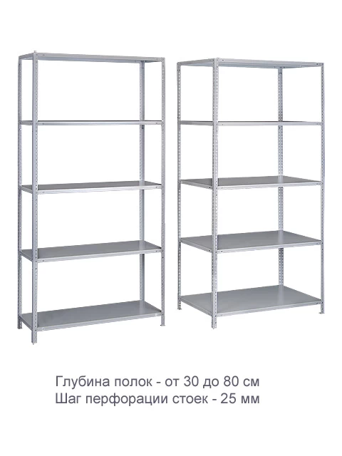 Металлические, перфорированные полки стеллажа отличаются высокой надёжностью. Максимум распределённой нагрузки на одну полку – до 120 кг, на весь стеллаж – до 500 кг.