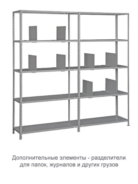 Металлические полки стеллажа отличаются высокой надёжностью. Максимум распределённой нагрузки на одну полку – до 120 кг, на весь стеллаж – до 500 кг.