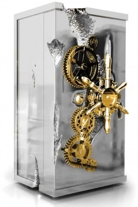 Эксклюзивный сейф Boca Do Lobo Millionaire Silver станет поистине поразительным подарком благодаря уникальной отделке: викторианский футуристический стиль с влиянием стимпанка воплощён тут путём «состаривания» корпуса имитацией сколов и трещин. Сам же корпус отделан массивом красного дерева, обшитого полированной и никелированной латунью. Эта необычная отделка придаёт сейфу впечатляющий и крайне эффектный вид, превращая его из предмета функционального в подлинное произведение искусства, которое украсит и оживит собою любой интерьер.
